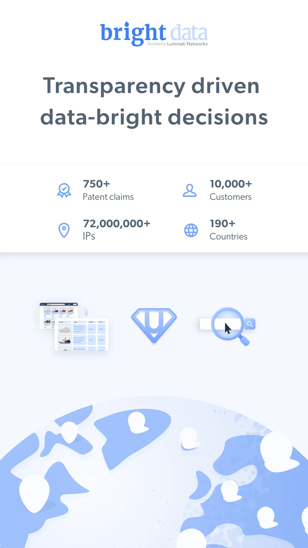 Bright Data (formerly Luminati) is a leading online data collection platform dedicated to enabling organizations of all sizes to access the internet with complete transparency. Bright Data’s 230+ team members assist businesses, companies, and brands in reaching openly available, reliable web data that allows them to make real-time intelligent decisions, faster and more effectively. The company serves thousands of customers from multiple industries and market sectors and is trusted by Fortune 100 firms. Bright Data has recently been recognized by leading research firm Gartner Inc. for its data-driven contributions during the COVID-19 pandemic and by esteemed research and consulting firm Frost and Sullivan for its technological advancements.